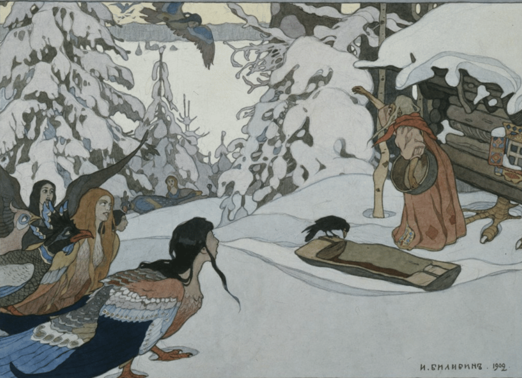 https://commons.wikimedia.org/wiki/File:Baba_Yaga_and_maiden-birds_by_I.Bilibin_(1902).jpg