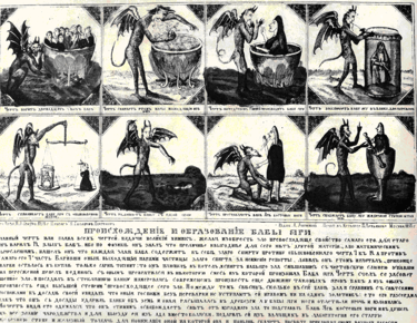 Origine et formation de Baba Yaga, planche de loubok, Bibliothèque nationale de France, Paris.