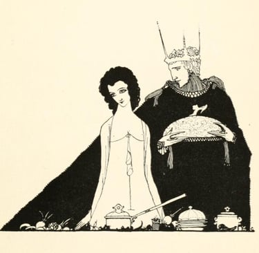 Robert Anning Bell, illustrations pour Aschenputtel(Cendrillon) dans Grimm's Household Tales (Contes de l'enfance et du foyer des frères Grimm)(1912), Londres, J-M Dent & Sons, New York, E. P. Dutton & Co, p. 107, 113.