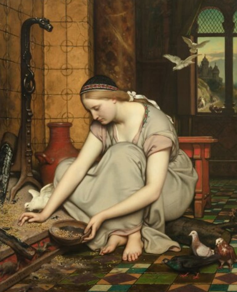Jozef van Lerius, Cinderella (Cendrillon)(1866), huile sur panneau, 90,6 x 73,9 cm, collection inconnue.