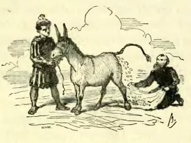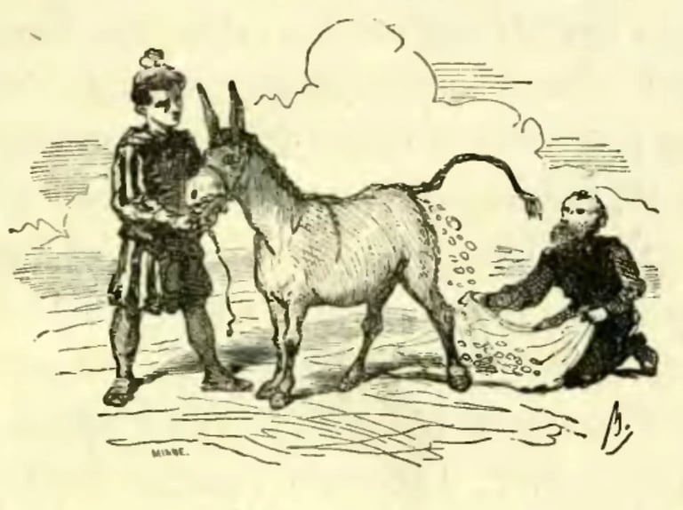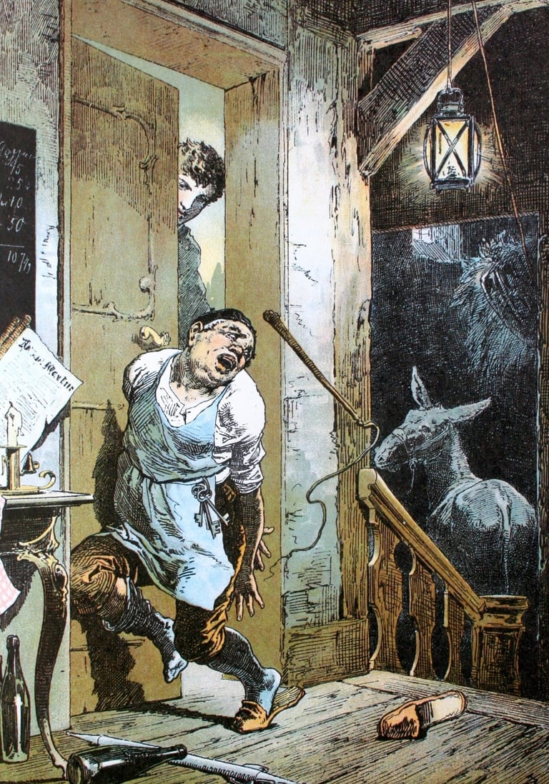 Illustration de Frédéric Baudry pour La table, l’âne et le bâton merveilleux dans Contes choisis des frères Grimm, trad. Frédéric Baudry, Paris, Ed. Hachette et Cie, 1864, p. 153-169.