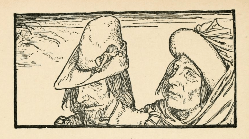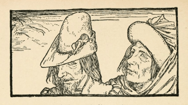Robert Anning Bell, illustration pour Tom Thumb (Tom Pouce) dans Grimm's Household Tales (Contes de l'enfance et du foyer des frères Grimm)(1912), Londres, J-M Dent & Sons, New York, E. P. Dutton & Co, p. 198.
